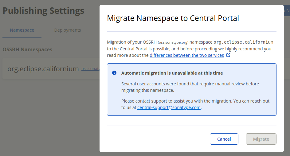 Re: [cross-project-issues-dev] OSSRH Service: Migration Plan (EOL June 30th, 2025)