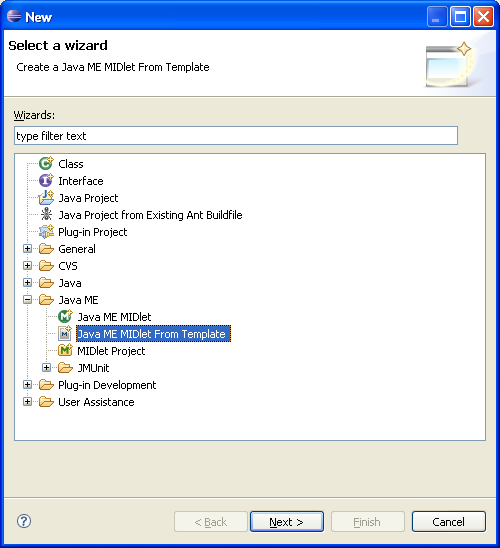 the Java ME MIDlet from Template in the context menu and in