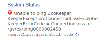 Caused by: org.osgi.service.prefs.BackingStoreException: Error loading node (node /cloud/org.eclipse.gyrex.http.jetty/channels). KeeperErrorCode = ConnectionLoss for /gyrex/prefs/cloud/org.eclipse.gyrex.http.jetty/channels