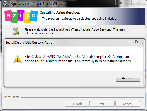 Our problem happened when we tried to install Azigo in some of our development machines, no matter if we install last Air version + Azigo or directly azigo installer, all installs finished with error status.