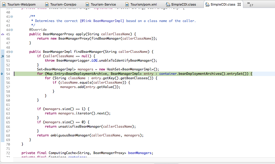 at org.jboss.weld.SimpleCDI$ClassNameToBeanManager.findBeanManager(SimpleCDI.java:68)