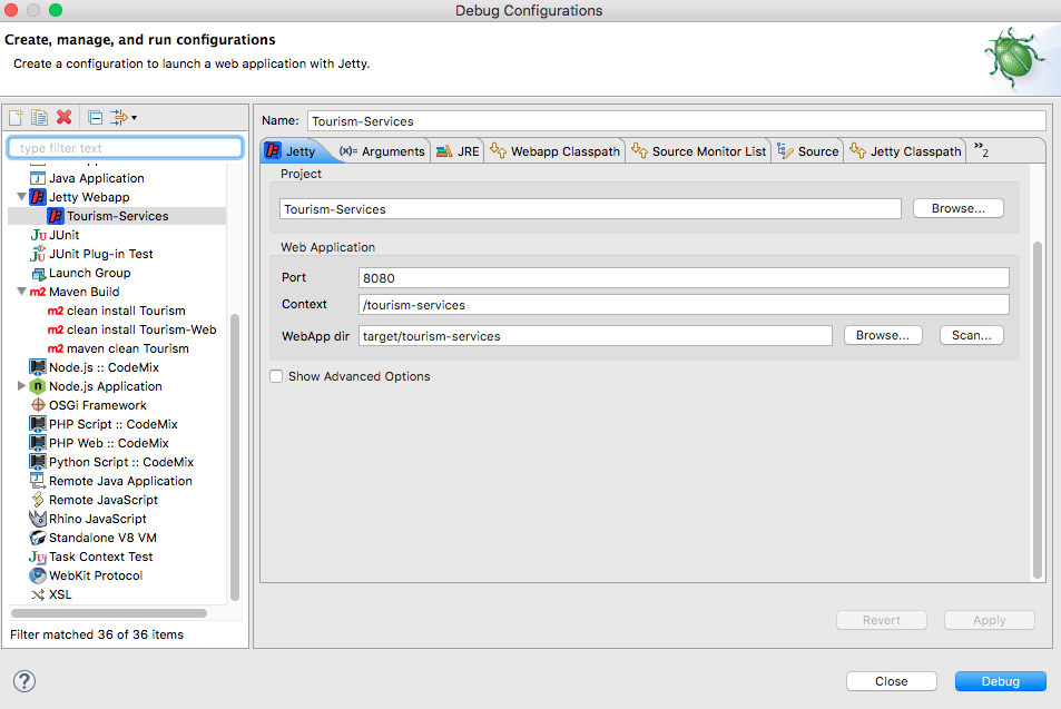 I try to deploy and run a Java-angular-maven-multi module application INSIDE ECLIPSE on Jetty 9.4.8 .