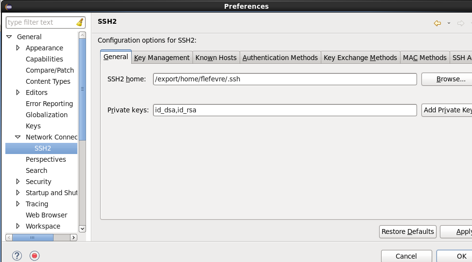 Make sure you add your good public key also in eclipse network connection>>ssh2