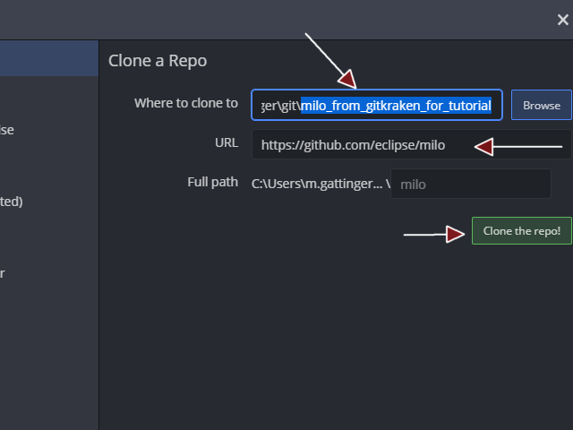Click “Add an existing local Git repository” and choose the folder you cloned to with Gitkraken