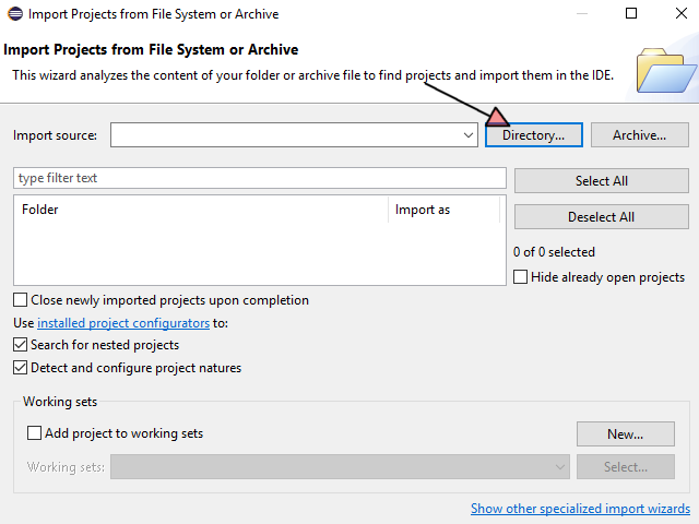 Click “File” -> “Open Projects from File System…” and add the Projects. You can add a working set. It is to have more clear arrangement, if you have a workspace with multiple projects.