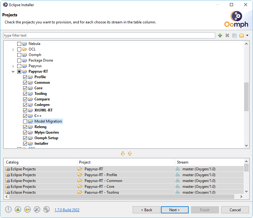 So, if you had imported the Papyrus-RT Migration project from the Oomph