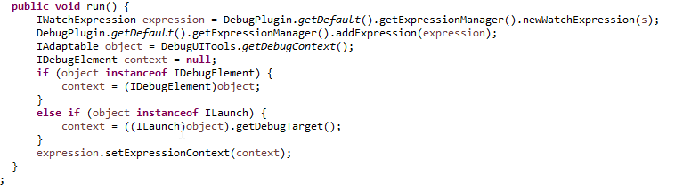While I am able to add IExpression objects to the "expressions" view via the IExpressionsManager, and the values in the view are displayed properly, The IExpression object I have has a null value and context.