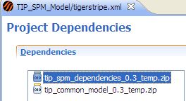 Here let me give more details. I have a model 'spm' tigerstripe project. It depends on a model named 'spm_dependencies'. We export 'spm_dependencies' as a tigerstripe model and add it in the list of 'dependencies' of the 'spm' model project.