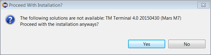 Maybe I am doing something wrong. From Eclipse Luna SR1a I search for "terminal" in the marketplace and find the solution "Terminal TM 4.0 20150430 (Mars M7)." I click install and then confirm and see a window