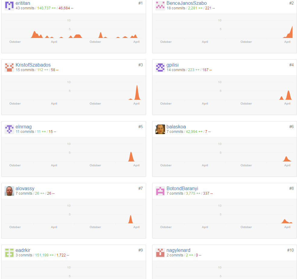 Each of the nominated committers have now 10-20 commits  , as seen below :