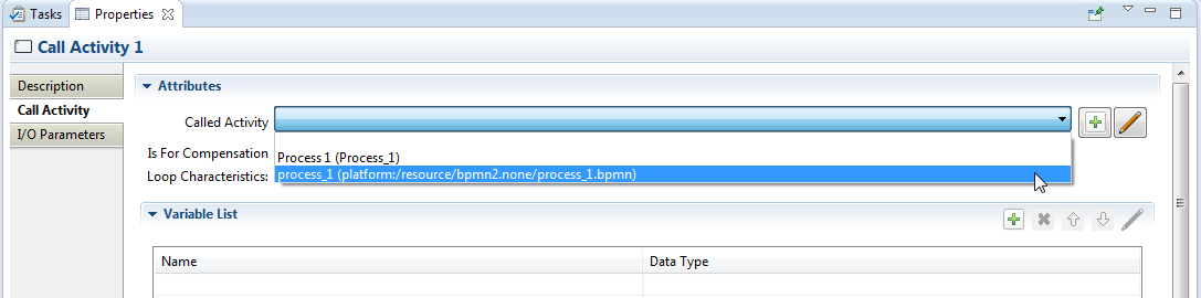 FYI, you can also reference an external process (a different bpmn file) from the Call Activity like this: