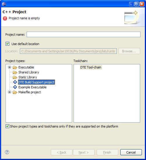 new tool chain, but creates a managed C/C++ project, so I have to select