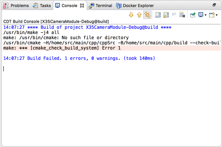 I reinstall Photon M6 and installed CDT nightly features. But It still does not build the project in the container.