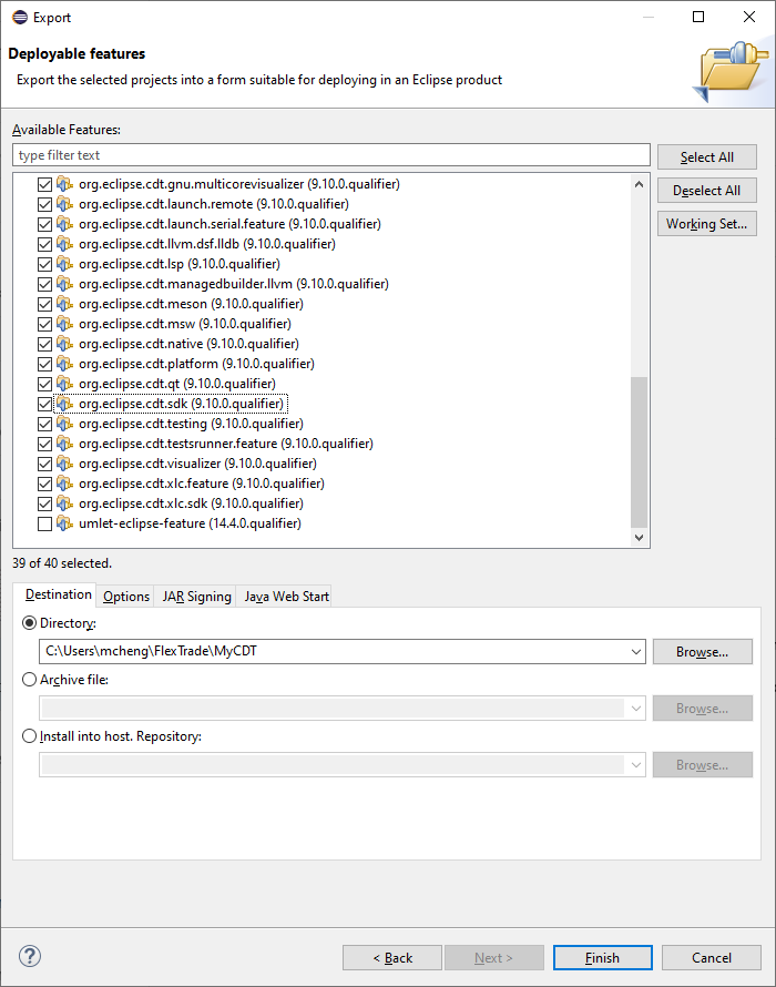 3. Select the features you're interested in (possibly all of them), and enter a destination directory under "Directory".