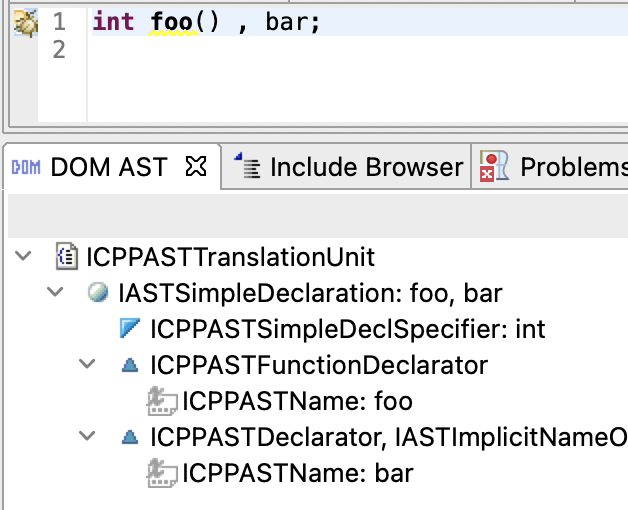 PS: The DOM AST view in my screenshot is in the plugin org.eclipse.cdt.ui.tests. Available either when using CDT from source or by installing the “C/C++ Unit Testing Support” from the CDT p2 repository.