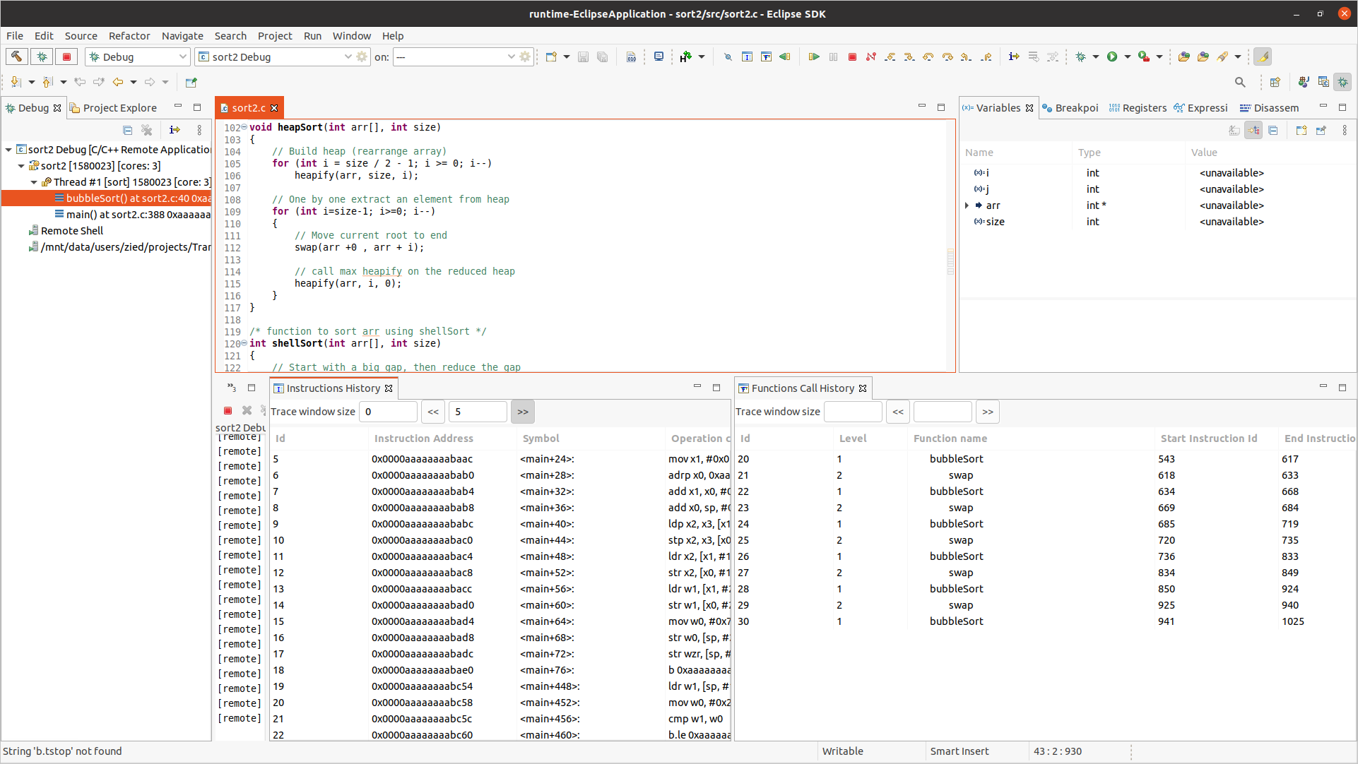 I am extending eclipse to handle gdb record btrace, and display and navigate in instructions and function-calls histories.