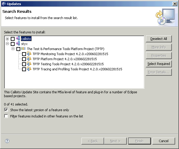 Attached is the screenshot of the update manager with the 4 new TPTP features:
