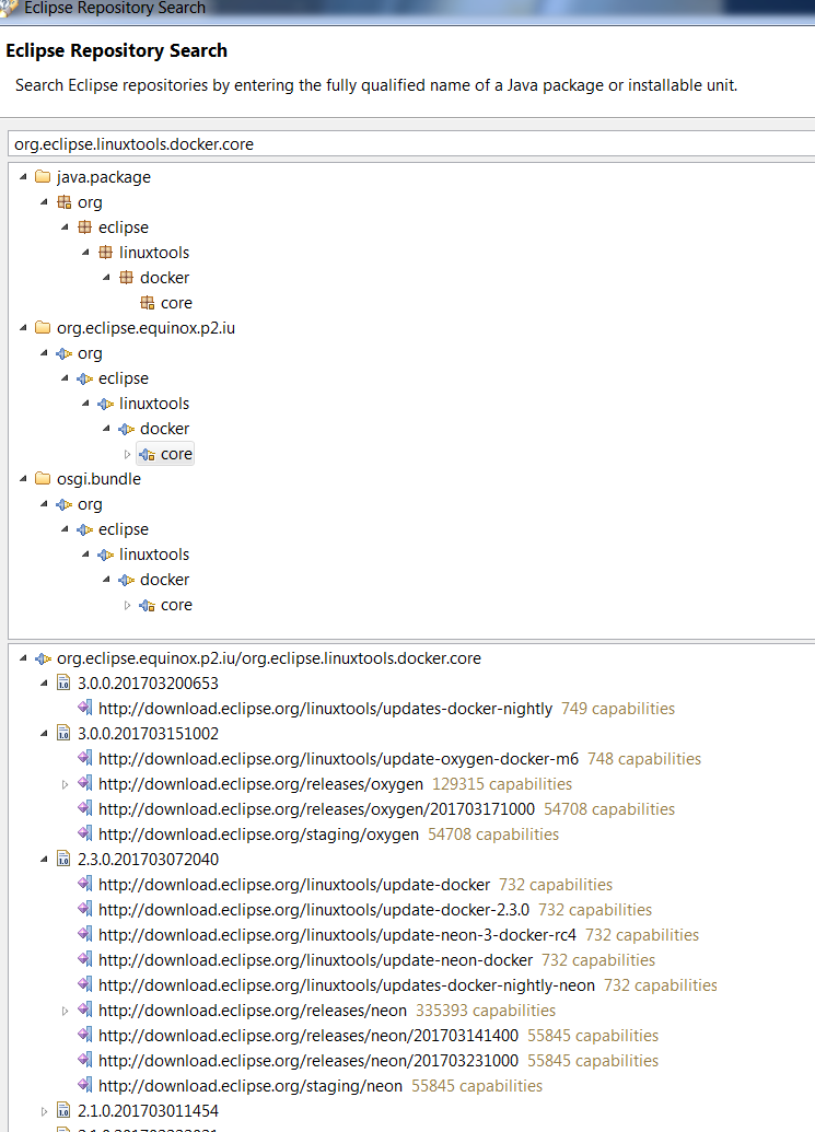 In the end, I also wasn't sure which version of the docker tools is proposed for contribution to Neon.3a.  I tried to search for update sites containing it like this: