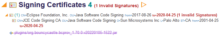 The report no longer complains about expired certificates but rather tests whether the artifact was properly signed during the validity period of the certificate.