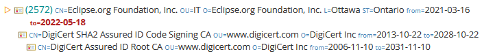 are still signed with that old expired certificate rather than with this new certificate