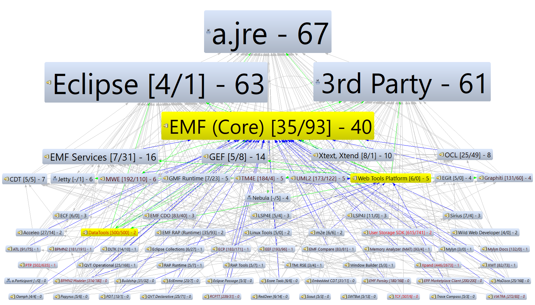 There are only two direct dependencies on DTP, but those two dependencies are high up in the dependency graph: