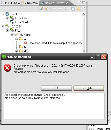 java.lang.ClassCastException: org.eclipse.rse.core.filters.SystemFilterReference