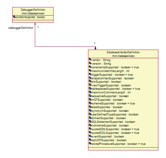 • Attributes (eventSupported, sqlUDFSupported and, storedProcedureSupported) are added in Database VendorDefinition class.