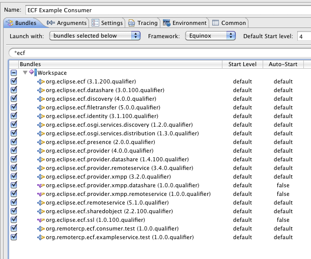 5. I've started service host and consumer with the ECF-bundles attached in the screenshot.