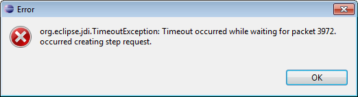 org.eclipse.jdi.TimeoutException: Timeout occurred while waiting for packet NNNN.