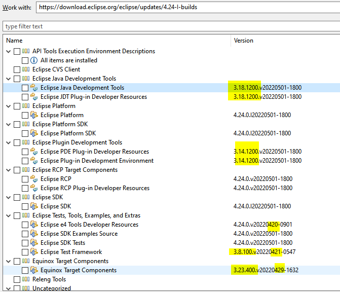 I use I-builds via   https://download.eclipse.org/eclipse/updates/4.24-I-builds/ (listed and explained if one clicks on I-build from the very first URL I pointed to https://download.eclipse.org/eclipse/downloads/drops4/I20220501-1800/#Repository ) and update every morning before starting to do any work.