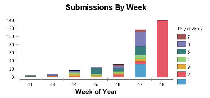As you can see, the deadline was a great motivator for an awful lot of people.  Not surprisingly, the pace of submissions slowed down once the extension was announced.