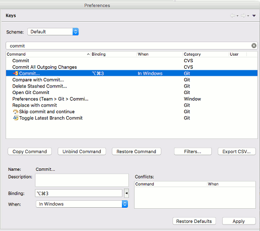 and when pressed e.g. in repositories view it brings up the deprecated commit dialog :-(