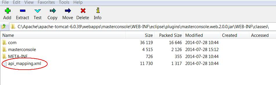 There is an internal class which depends on a "api_mapping.xml" file which is located under "WEB-INF/classes" (shown below). However, the class complains unable to find the .xml file.