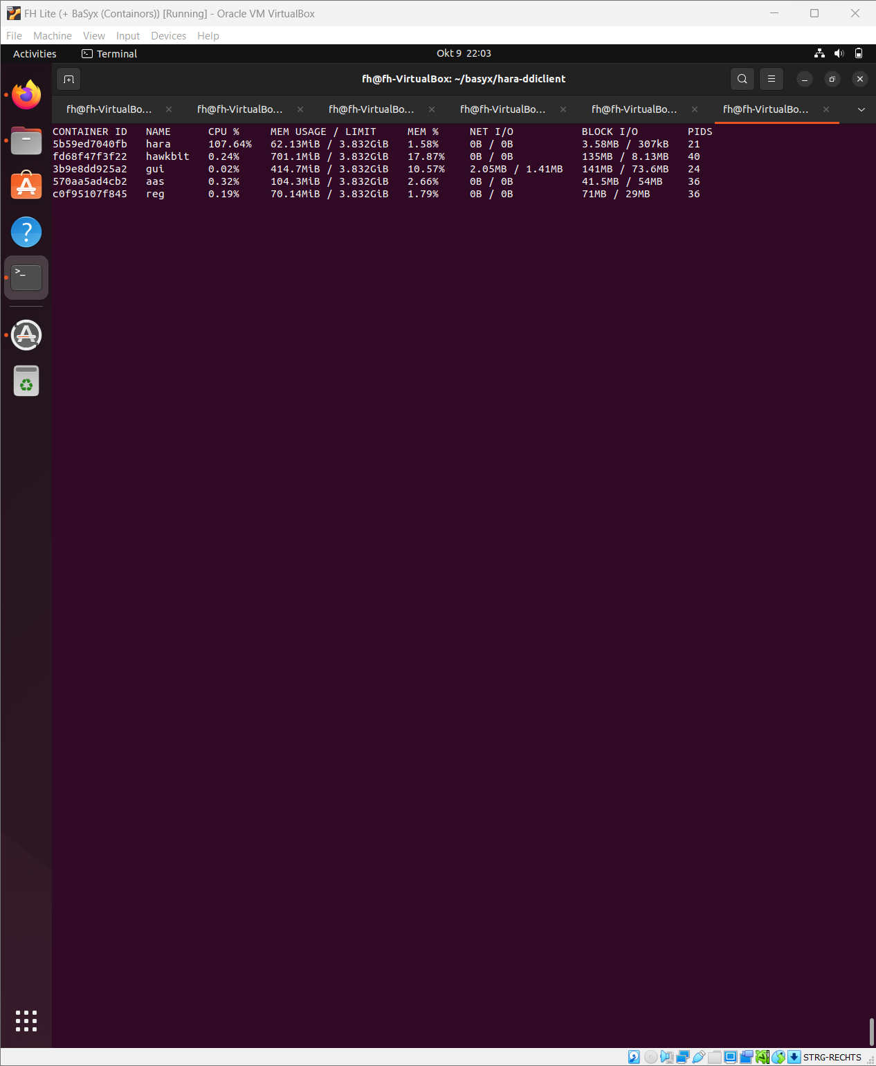 However, I observed an unexpected behavior of the built hara client image, even though my testing environment that is not even very limited (VM machine, 2 cores, 2GB memory – Host is i9 12Gen).