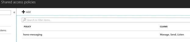 For a project I currently try to connect Hono to the Azure Service Bus via AMQP. Therefore, I created an instance of the Serviec Bus on Microsoft Azure and an access policy.