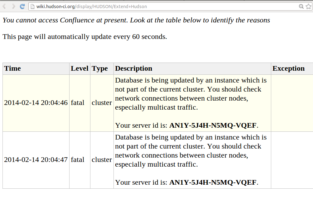 I cannot access hudson wiki http://wiki.hudson-ci.org/display/HUDSON/Extend+Hudson for following error today and failed also yesterday. Can you have a look on it? Thanks,