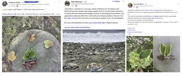 This year the event theme and community contest is creating Jakarta EE logo using natural elements; share your creation using hashtagJakartaEEInNature. The winner will be announced live during the JakartaOne Livestream, with a special surprise in store!