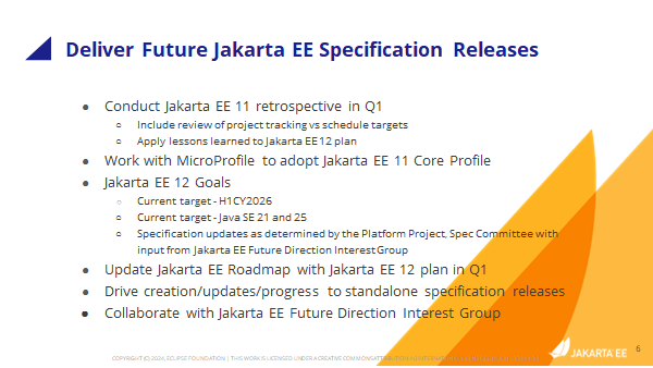 - Update Jakarta EE Roadmap with Jakarta EE 12 plan in Q1 [of 2025]