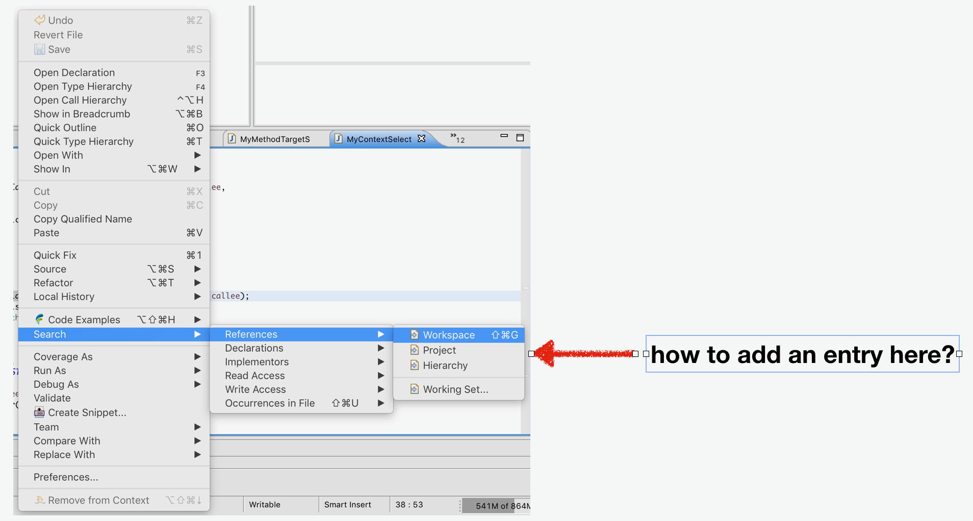 I’d like to extend JDT’s Menus by adding menu items for searching remote code repositories, e.g., for finding references or declarations of a method or type).