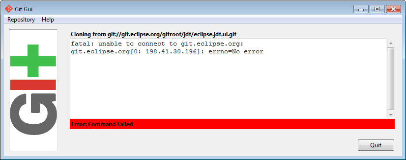 Im trying to download JDT source code via GIT with URL git://git.eclipse.org/gitroot/jdt/eclipse.jdt.ui.git and git://git.eclipse.org/c/gitroot/jdt/eclipse.jdt.ui.git as well and Im getting following error. Can you please help me in downloading?