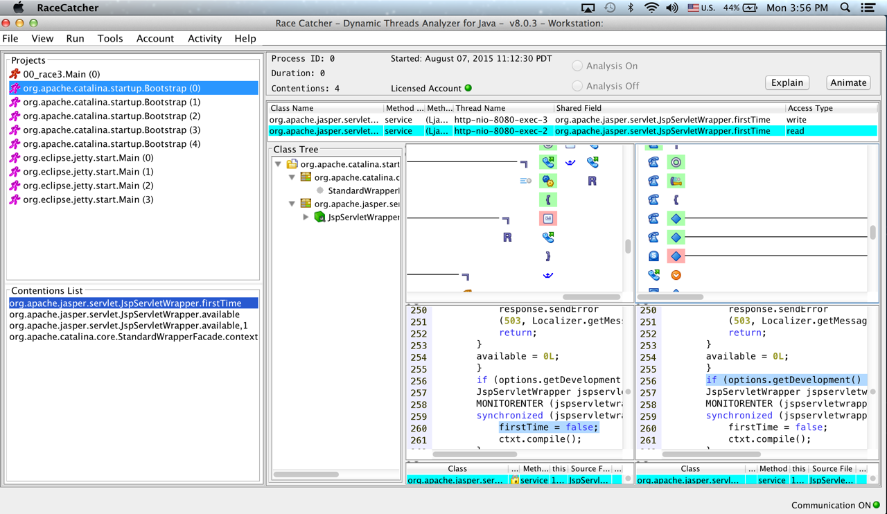 This link shows how to verify that races are not experienced by your JVM powered applications.