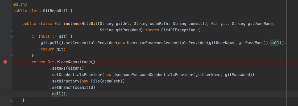 The function I use is as below, the git username and password are correct, which I could use by "git clone https://username:passwor@code.baidu.com/baidu/***/***"