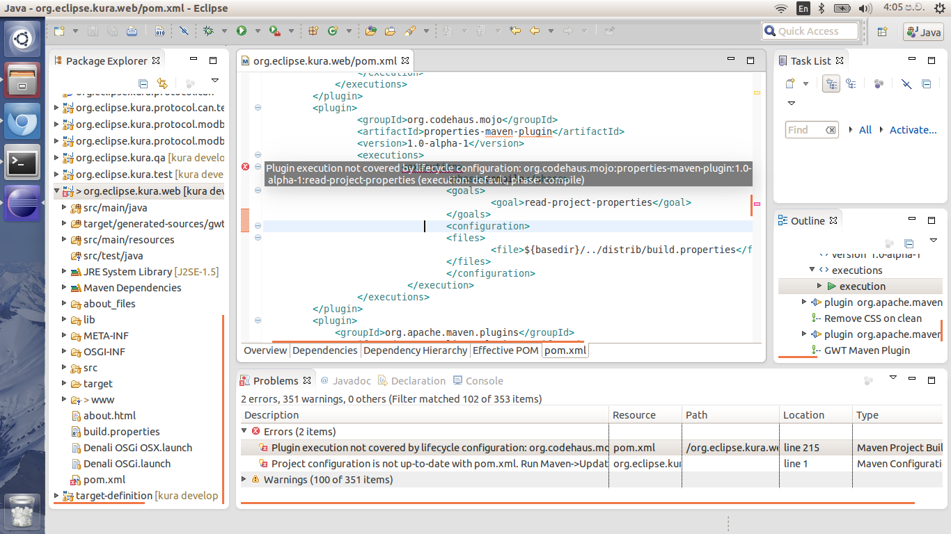 I downloaded eclipse juno and build the project as you said. In that way I could managed to remove all those errors but there are still errors in the org.eclipse.kura.web project. I tried the solution that is mentioned in the repo. but i couldn't find the target/generated-sources in the add folder window. I'm attaching a screen shot so that you can get an idea.
