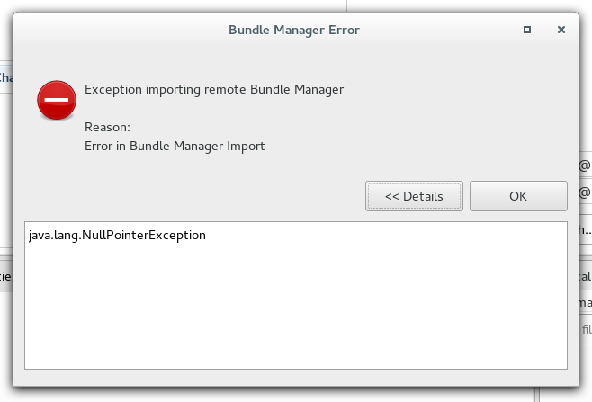 So perhaps there's something else going on with your install of these bundles.   Would it be possible for you to look in the Error Log view and see if there's more info (and stack trace) for this NullPointerException?