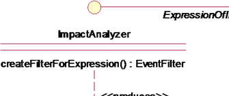 "Impact Analyzer" has two lines below, which might be compartment partitions for a missing class box periphery, for which the circle might be an interface indicator, but as it stands the diagram resembles no UML notation that I know of.