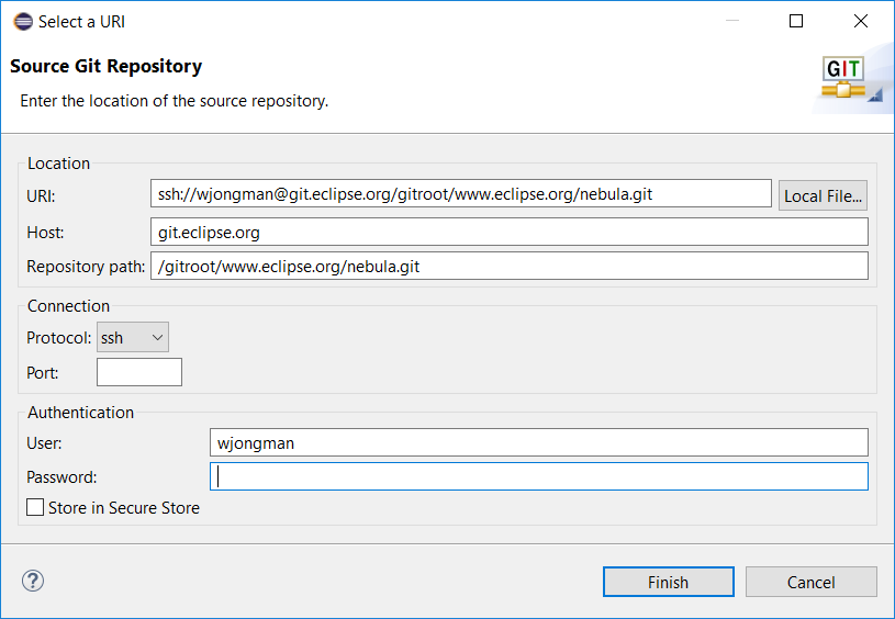 This is my setup. I push with my Eclipse user and password: