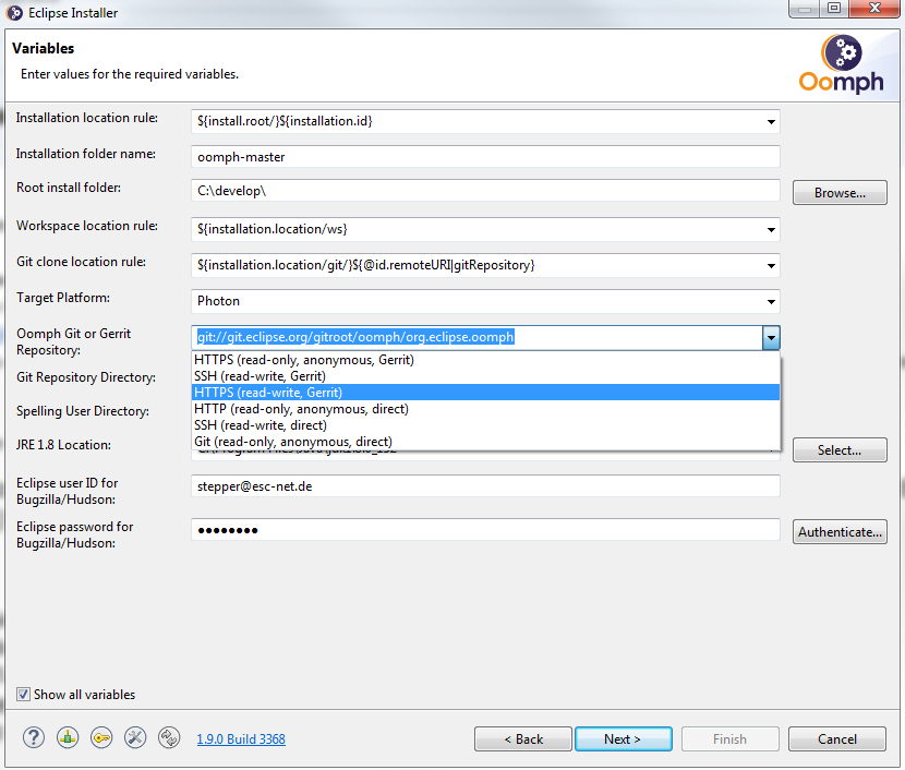 2. Configure the push URI to https://<gerrit-user>@git.eclipse.org/r/oomph/org.eclipse.oomph.git