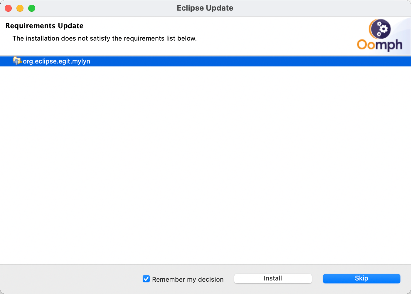 Now Oomph prompts we with the following dialog upon every Eclipse start.