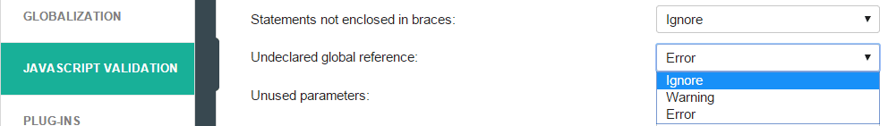 We do have this option and the default value is set to "show as error". In Orion IDE, there is a _javascript_ validation section in the user's settings page where users can set it to "ignore" or "as warning".