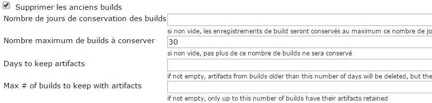 My usual practice is to keep 30 builds but reduce the number of artifacts.